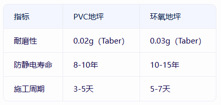 表面電阻10Ω-10Ω→PVC/環氧地坪+防靜電墻面
